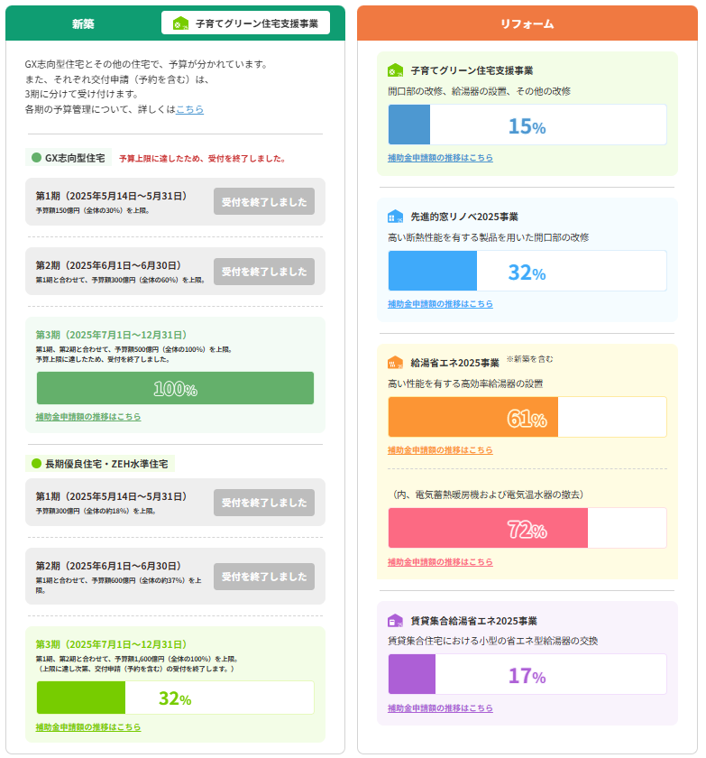 ※住宅省エネ2025キャンペーン|予算に対する補助金申請額※の割合(概算値)より引用