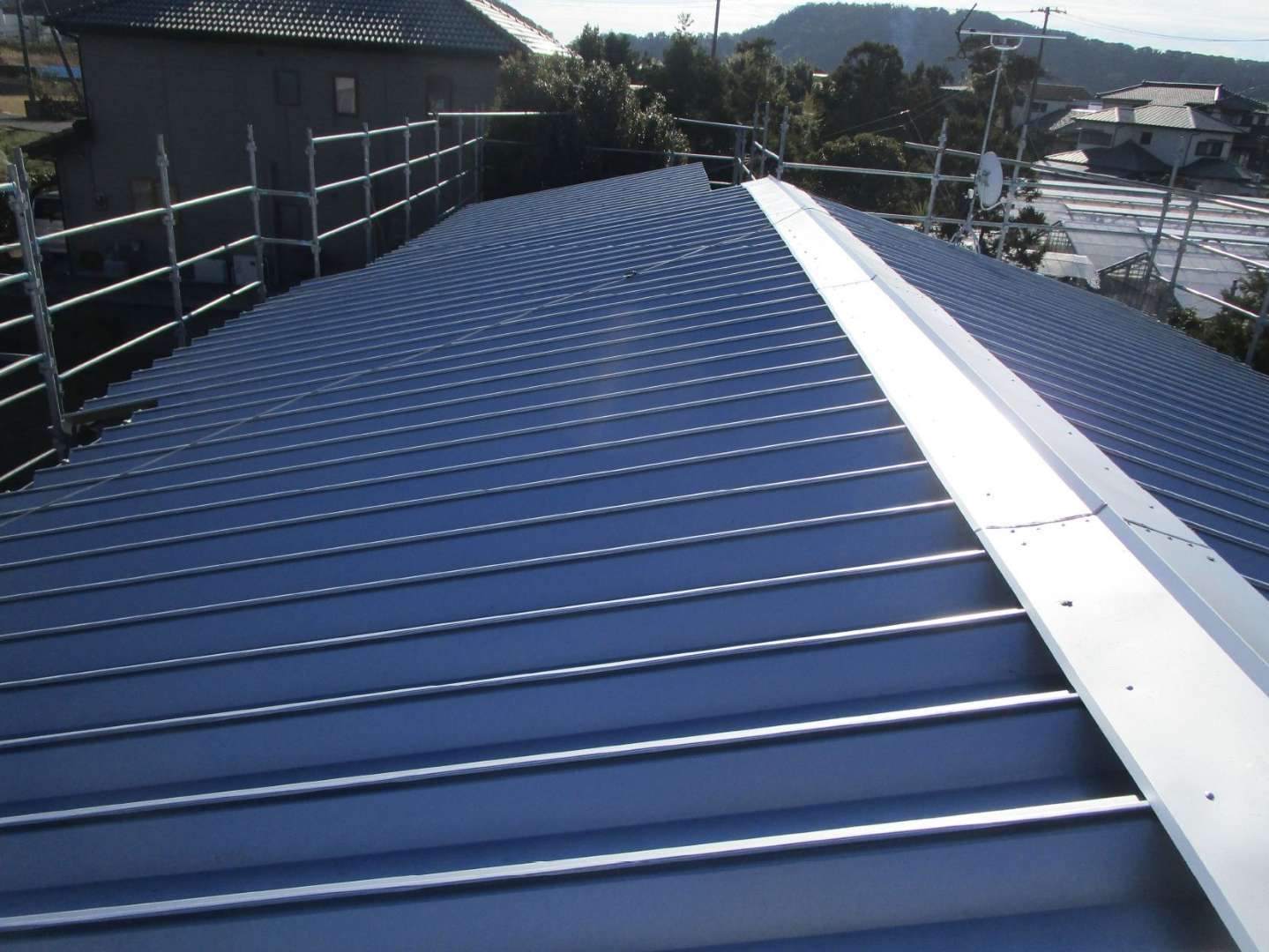 ひび割れが広範囲に及ぶ場合や、屋根全体の劣化が進んでいる場合は、部分補修では対応できません。既存の屋根の上に新しい屋根材を重ねる「カバー工法」または既存屋根を撤去して新しく施工する「葺き替え工事」が選択肢になります。カバー工法は比較的費用を抑えられ、工期も短いのが特徴です。一方、葺き替えは下地から完全に交換するため、耐久性や防水性能が高く、長期的な安心につながります。費用は屋根の面積や素材によって異なりますが、一般的にカバー工法で80〜150万円前後、葺き替えで150〜250万円程度が目安です。