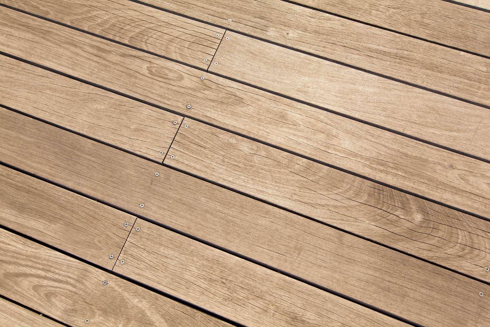 ウッドデッキに生じるひび割れは、木材が雨で湿ったあと急速に乾燥するなど、含水率の変化によって起こることが多いです。木材は水分を吸うと膨らみ、乾くと縮むため、この動きが繰り返されると割れ目が生じます。また、直射日光による温度差も深さのある割れを誘発します。ひび割れの幅がmm単位で広がっている場合は、パテ補修などの施工が必要になることがあります。放置すると木部の強度が低下し、歩行時のきしみや破損につながるため注意が必要です。